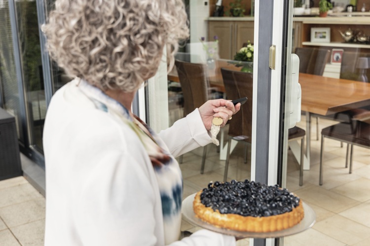 Při balení s nákupními taškami je praktické jednoduše stisknout tlačítko – a přední dveře nebo dveře na terasu se automaticky odemknou. Dálkový ovladač Hometec Pro CFF3100 to dělá.