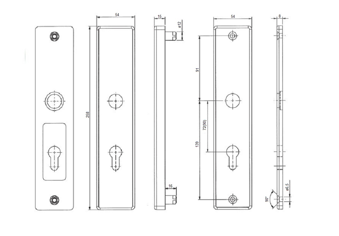• Kování je výšky 258 mm a šířky 54 mm.