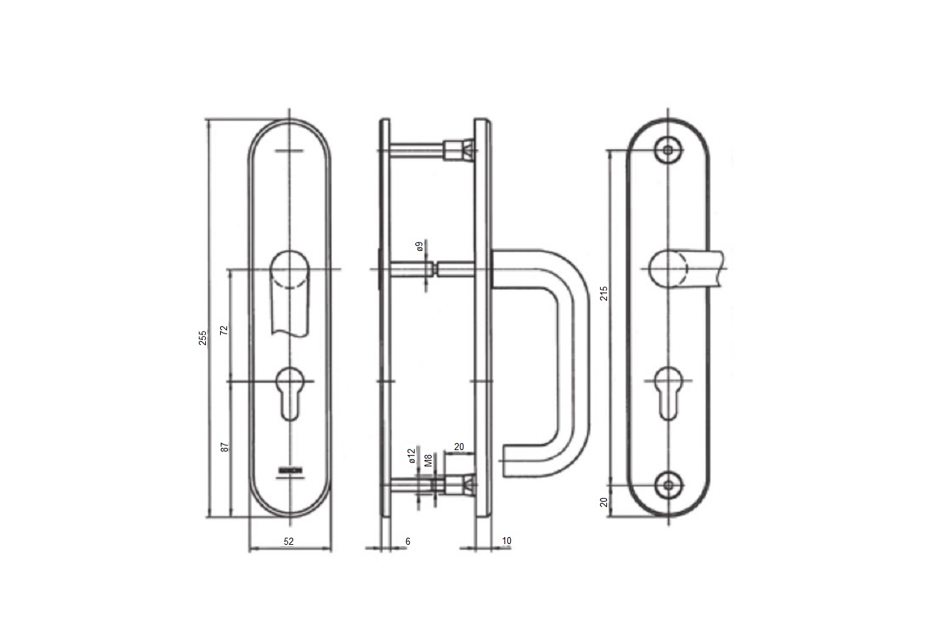 • Bezpečnostní kování (pravo-levé provedení) s klikou do tvaru "U".