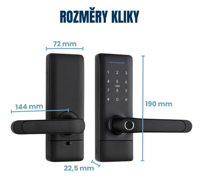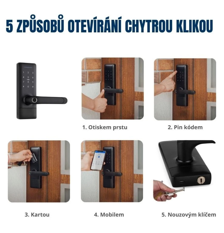 ✔ Až 50 otisků prstů, 50 čipových karet a 50 individuálních hesel