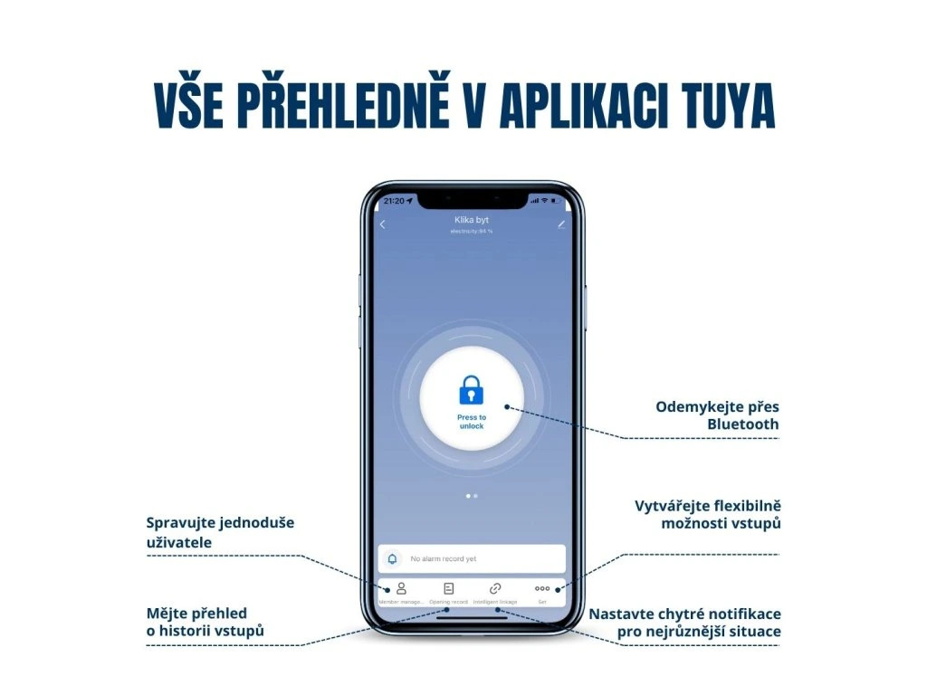 ✔ Životnost baterií: přibližně 10 měsíců (v případě odemykání 20x denně)