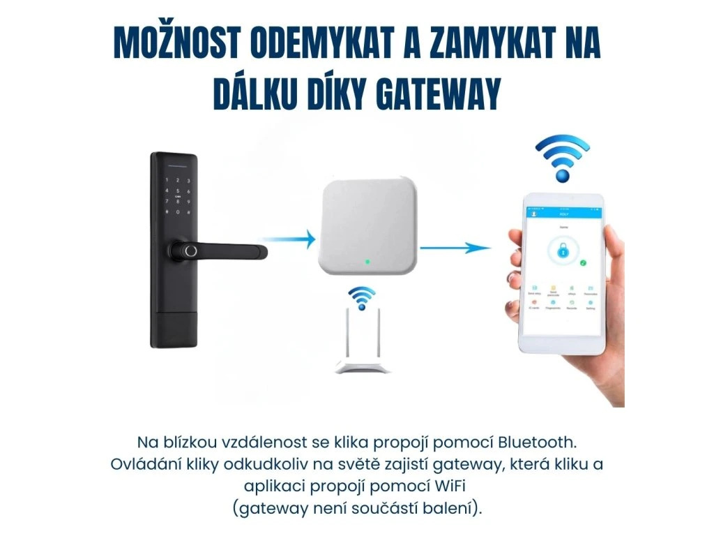 ✔ S gateway lze propojit i přes WiFi 2,4 GHz (nutno dokoupit)