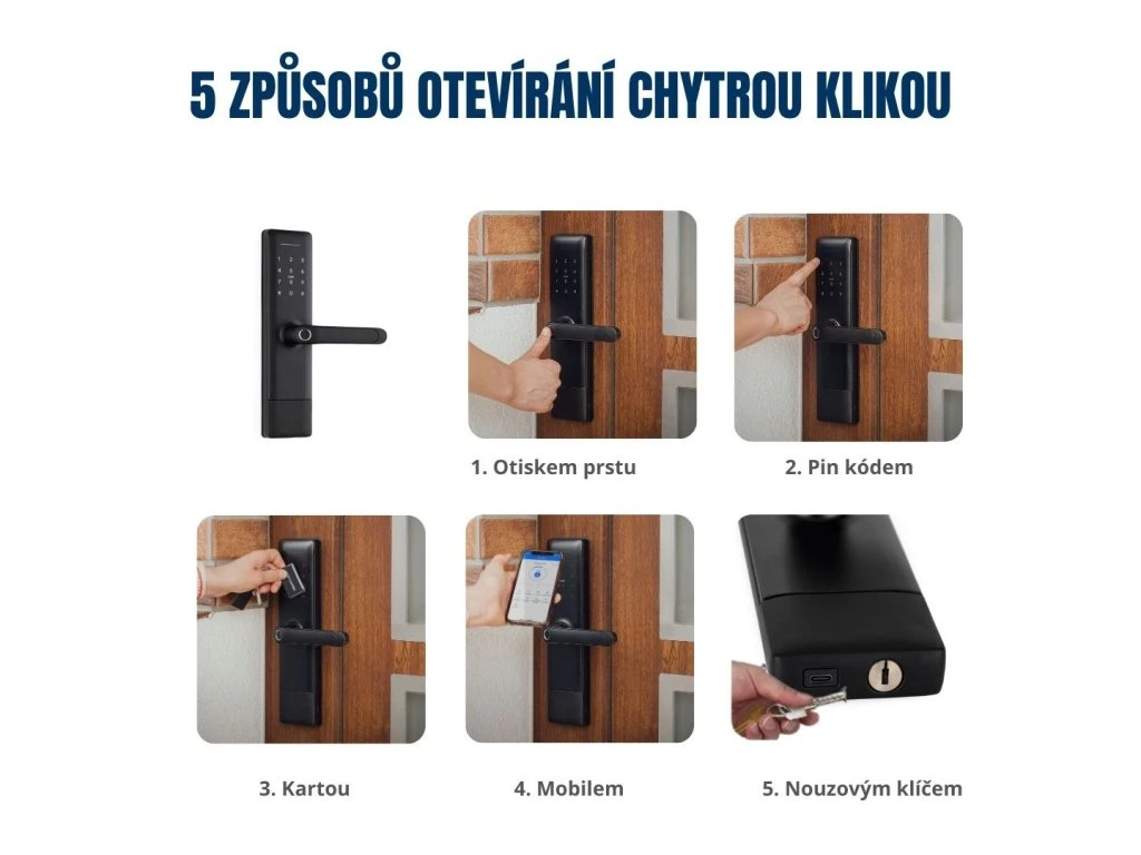 ✔ Až 50 otisků prstů, 50 čipových karet a 50 individuálních hesel