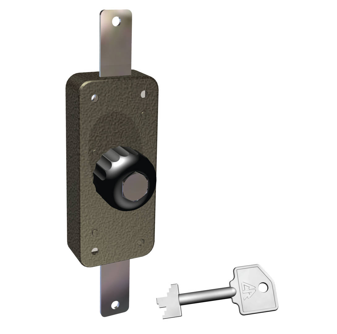 Vícebodový povrchový zámek s cylindrickou vložkou a otočných knoflíkem. K dispozici oboustranná verze se dvěma možnostmi zamykání zevnitř: knoflíkem (verze P) nebo klíčem (verze C).