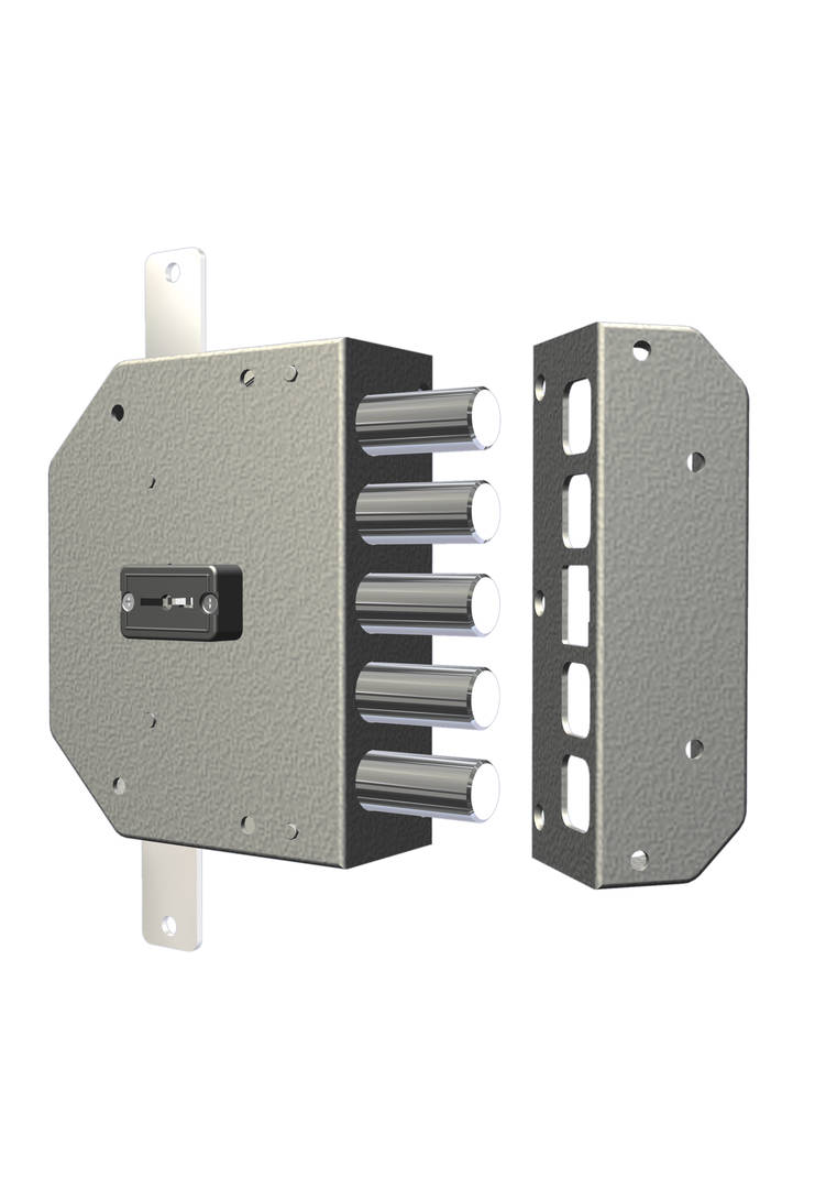 Vícebodový povrchový zámek na dvouzubý klíč s ochranou proti vyháčkování díky systému PLUS. K dispozici v levé nebo pravé verzi, se závorou nebo bez ní.