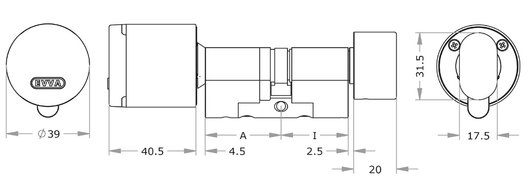 Snímač čtecí jednotky se nachází v plastové krytce hlavice cylindrické vložky Xesar mezi logem společnosti EVVA a LED diodou.