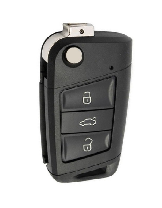 Autoklíč nemá funkci Kessy, funguje pouze dálkové ovládání otevírání a zavírání tlačítky. Baterie 2032 umístěna v zadní části.