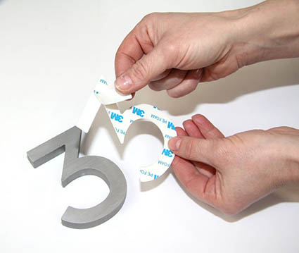 Přibití - našroubováním hřebu se závitem do čísla a pomocí gumové nebo dřevěné paličky přibijte na příslušnou plochu.