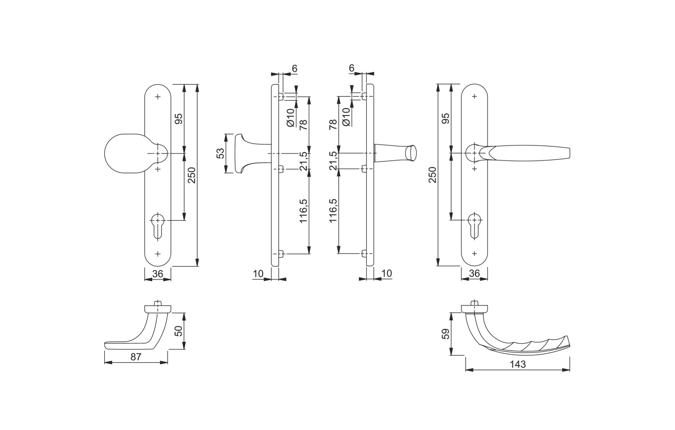 • Bezpečnostní profilové kování je z hliníku běžné bílé barvy (F9016).