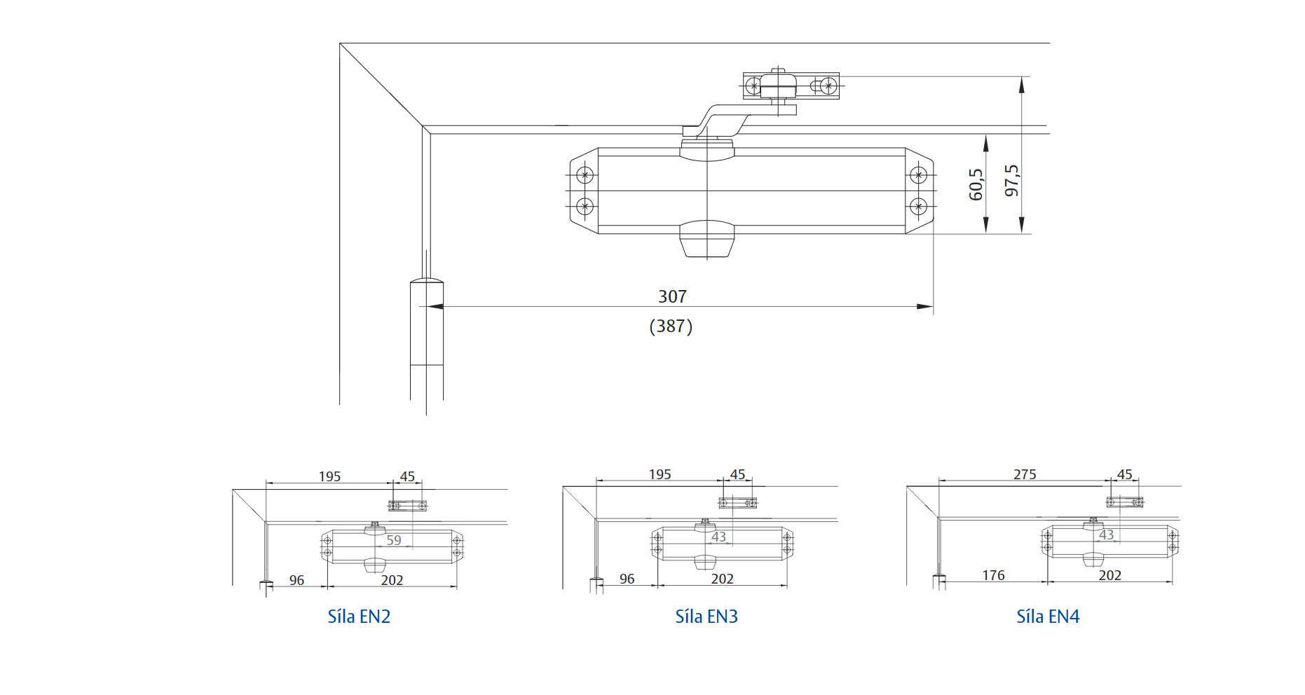 • Dveřní zavírač s hřebenovou technologií a aretačním ramínkem (L141) pro levé i pravé dveře do šířky 1100 mm a váhy 80 kg (síla 4).
