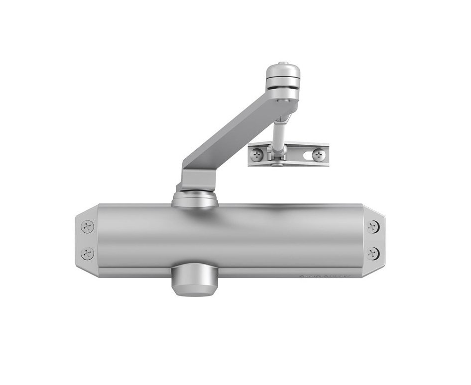 • Dveřní zavírač s hřebenovou technologií a lomeným ramínkem pro levé i pravé dveře do šířky 1100 mm a váhy 80 kg (síla 4).