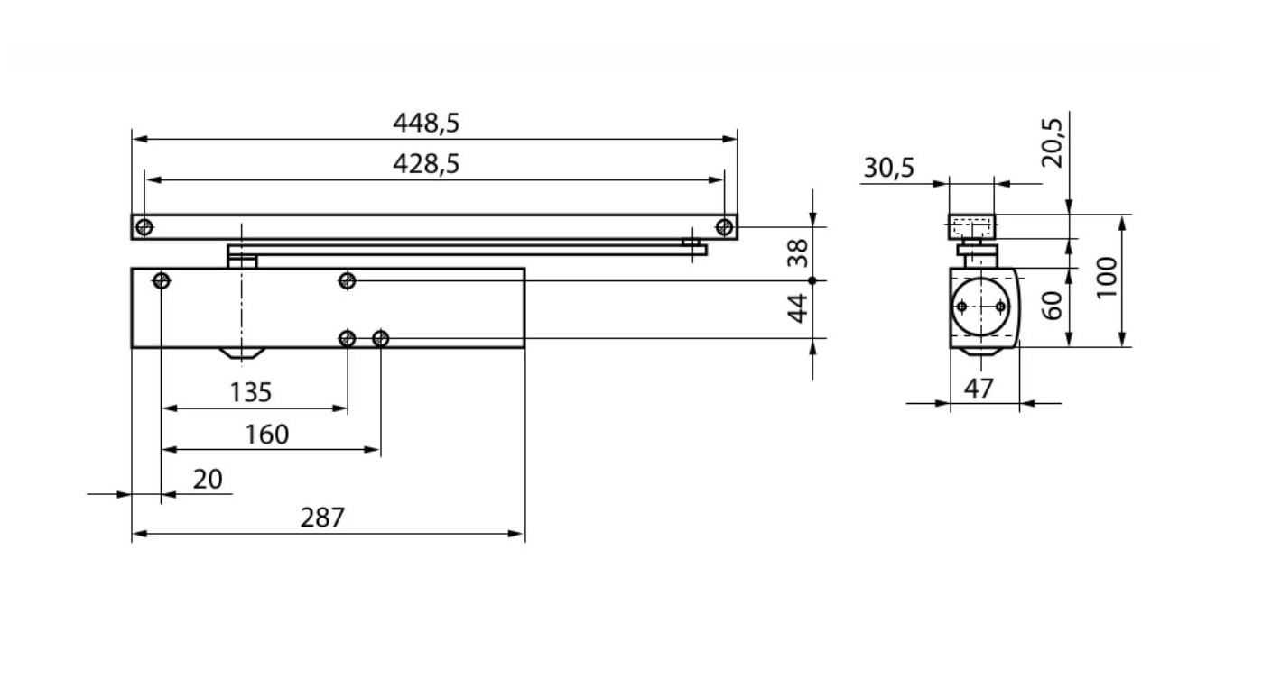 • Dveřní zavírač pro interiérové dveře (váha max. 120 kg a šířka max. 1400 mm).
