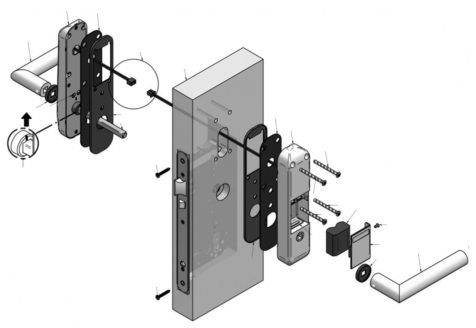 Elektronické kování DOM EasyKey ADAPT se vyznačuje jednoduchostí montáže, odolnou konstrukcí a možností použití téměř všech dveří a každého závěsného zámku dostupného na trhu. Kování je díky malé šířce plechu možné namontovat jak na běžné dřevěné dveře, tak i na většinu profilových dveří (minimální mezera 22 mm a více) až po kovové dveře HORMANN, ve kterých je velmi specifický závěsný zámek bez standardních montážních otvorů na stranách čtverce na kliku dveří.