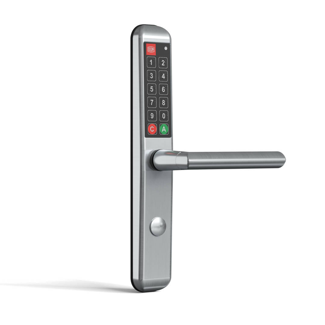 EasyKey je elektronické dveřní kování s numerickým a kódovým panelem, které se ovládá bez karet nebo klíčů. Je přizpůsobitelné téměř jakémukoli závěsnému zámku na trhu a nabízí bezpečnost a kontrolu. Jedná se o jednoduchý a pohodlný nástroj v bezpečných prostředích, jako jsou kanceláře, supermarkety, hotely, nemocnice, soukromé pozemky nebo veřejné budovy. Vezměte prosím na vědomí, že tento produkt není vhodný pro venkovní použití.
