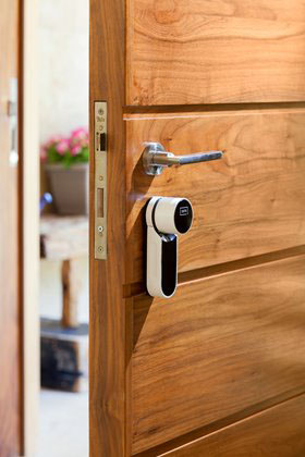 Inteligentní zámek, který umožňuje ovládat zámek dveří pomocí Smartphonu, tabletu a dalších zařízení podporující technologii Bluetooth.