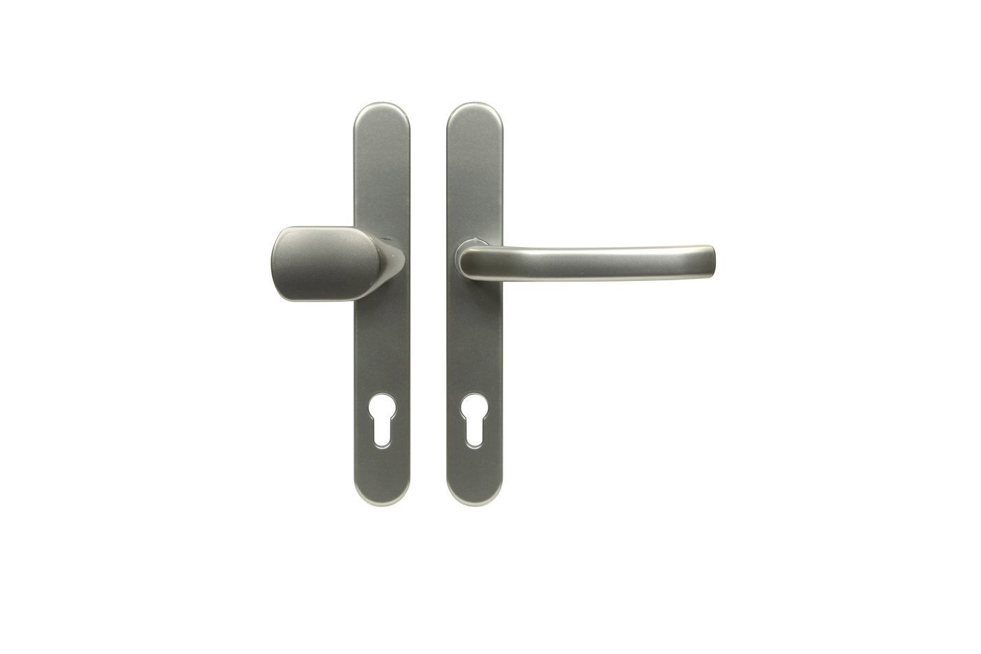 • Štítové kování z hliníku s pevně uloženou klikou a vratným mechanismem vhodné pro vstupní plastové dveře.