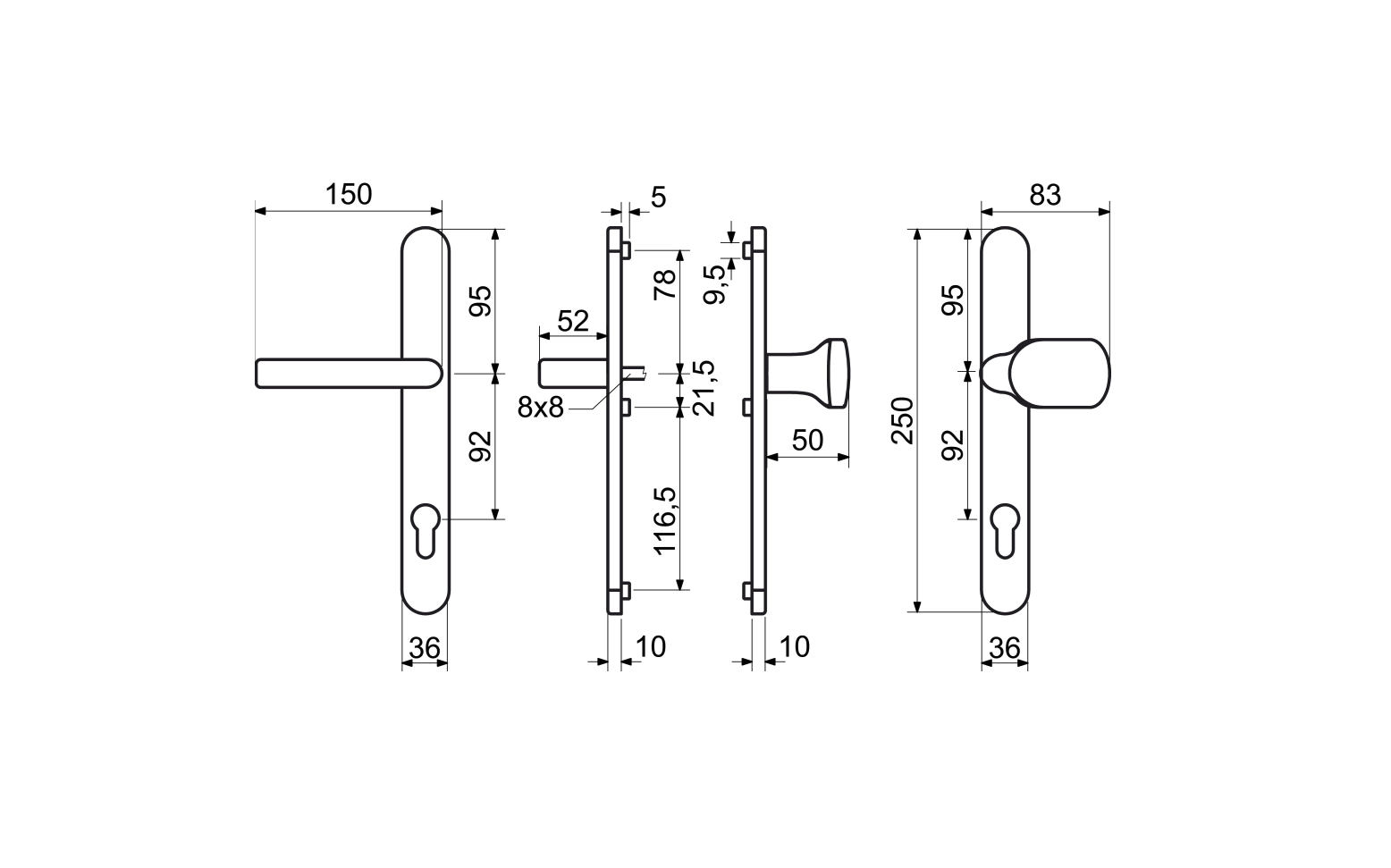 • Štítové kování z hliníku s pevně uloženou klikou a vratným mechanismem vhodné pro vstupní plastové dveře.