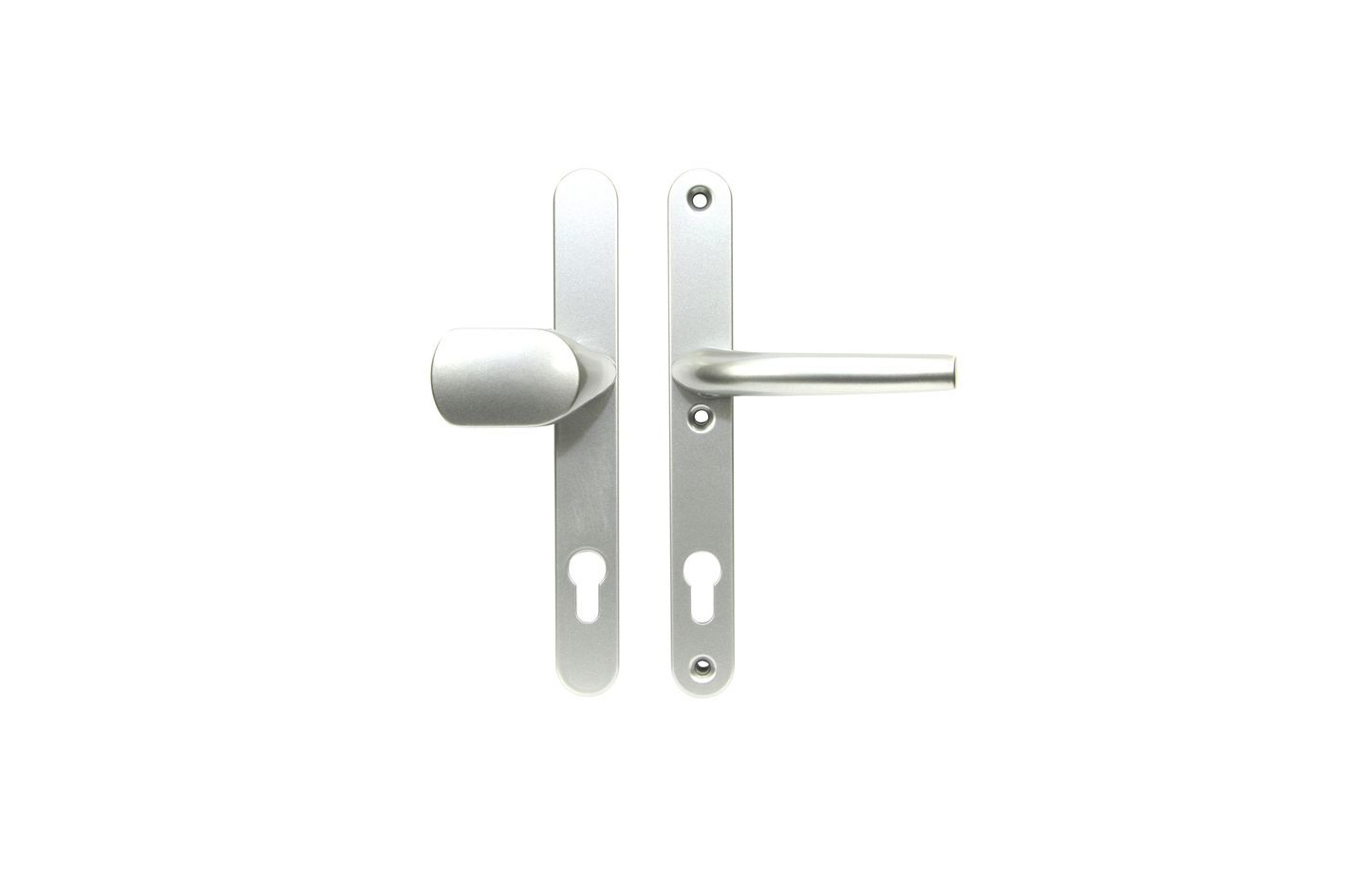 • Štítové kování z hliníku s pevně uloženou klikou vhodné pro vstupní plastové dveře.