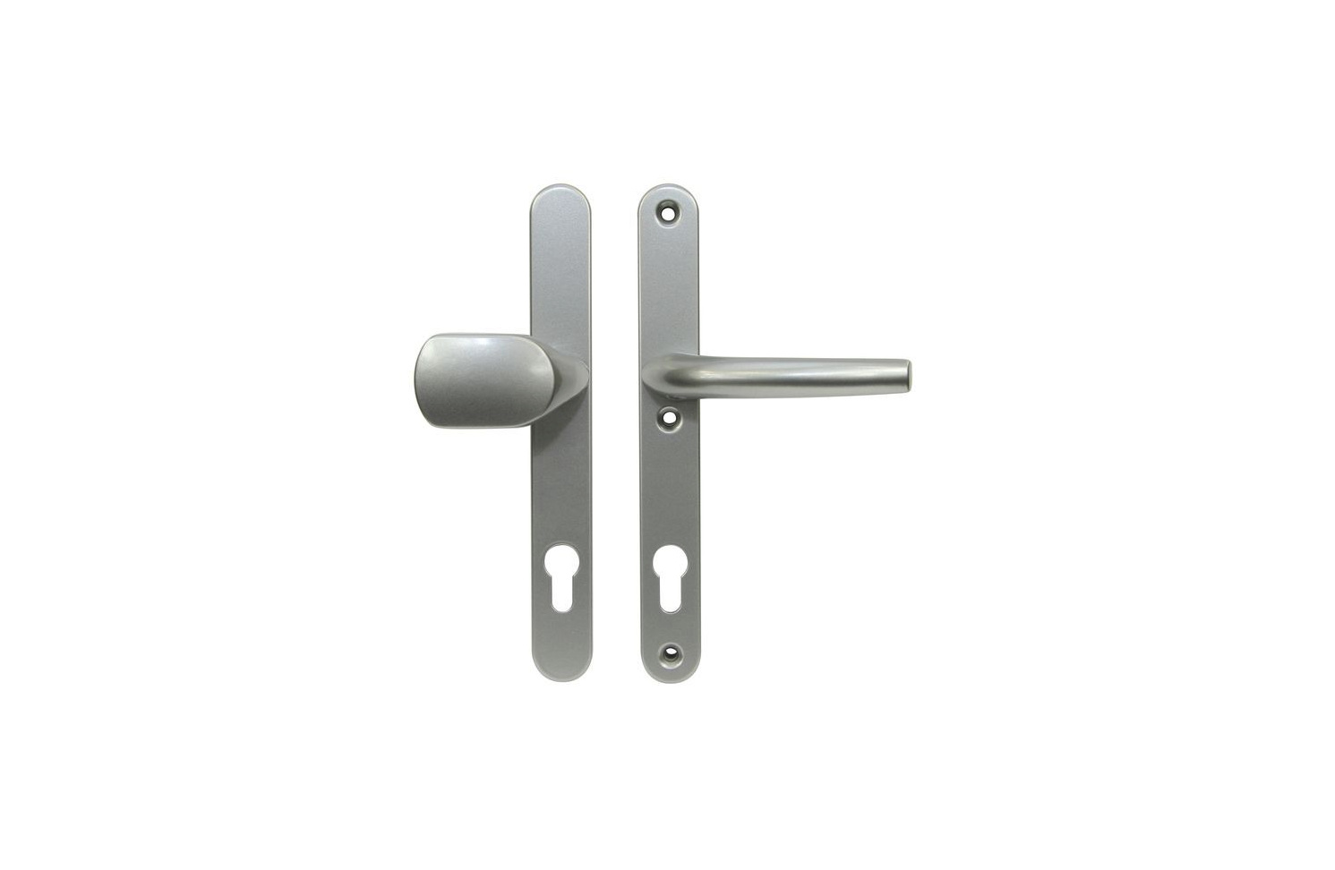 • Štítové kování z hliníku s pevně uloženou klikou vhodné pro vstupní plastové dveře.