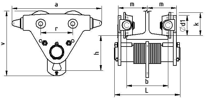 Jednonosníková kočka je určena pro pojezd po horizontální jeřábové dráze.