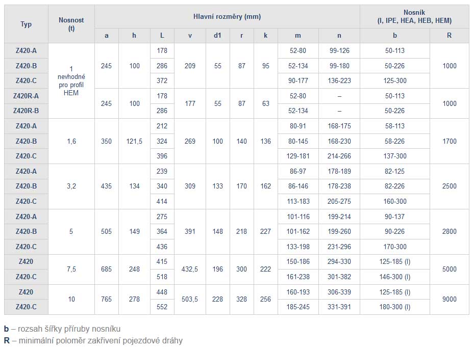 Novinka: doplnění typu Z420-C – rozšíření použití pro větší rozsah šířky příruby nosníku.
