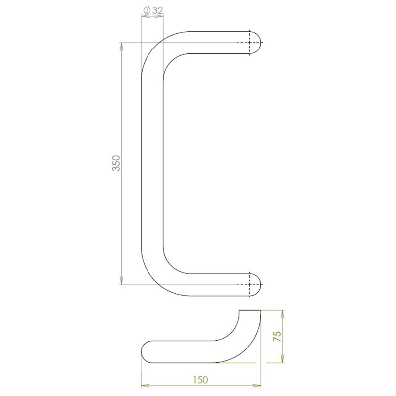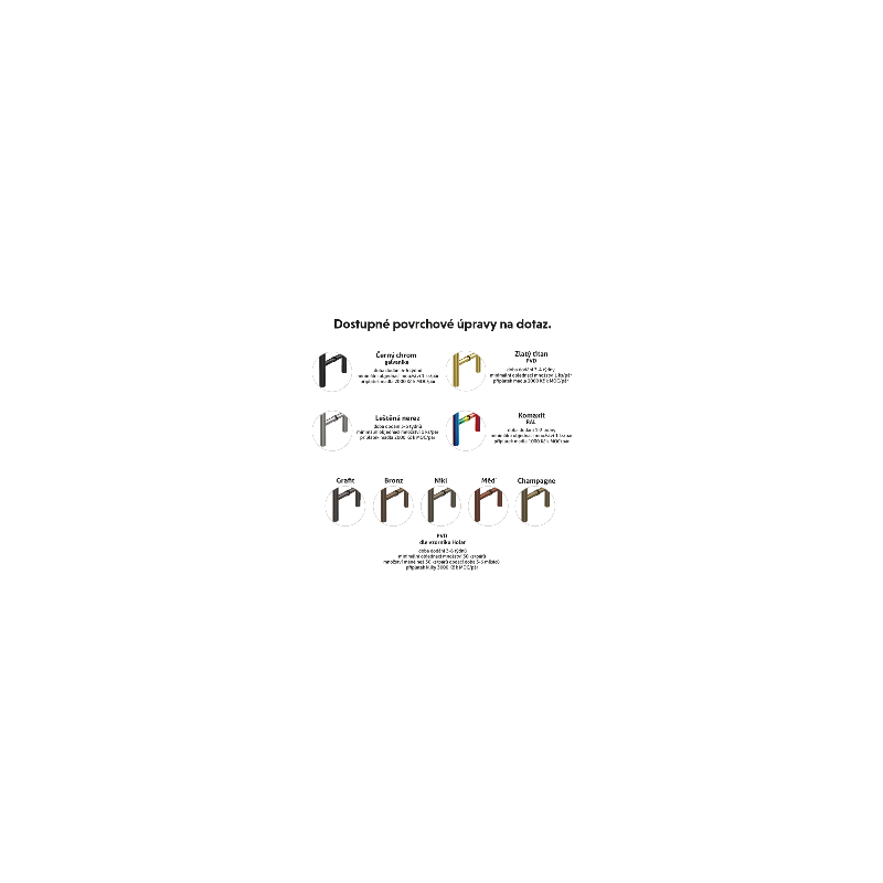 Toto dveřní madlo je dostupné v páru pro oboustranné použití, nebo jako kus pro jednostranné použití. Celková délka madla: 382 mm, rozteč 350 mm. Pár není možné použít jako dvě jednostranná madla.