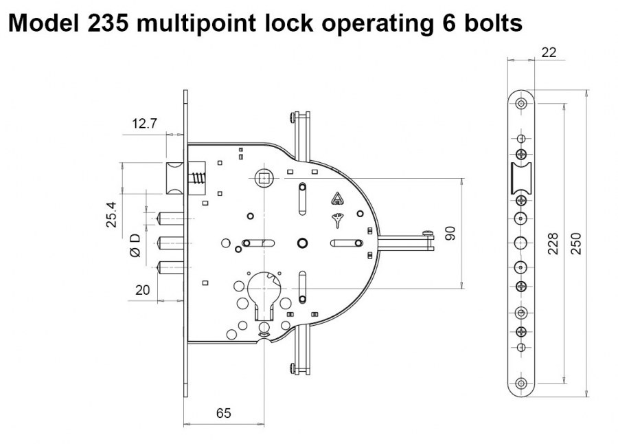 3 čepy o průměru 10mm, instalují se do jádra dřevěných nebo kovových dveří a zajišťují zamknutí ve 4 směrech s více závorami.