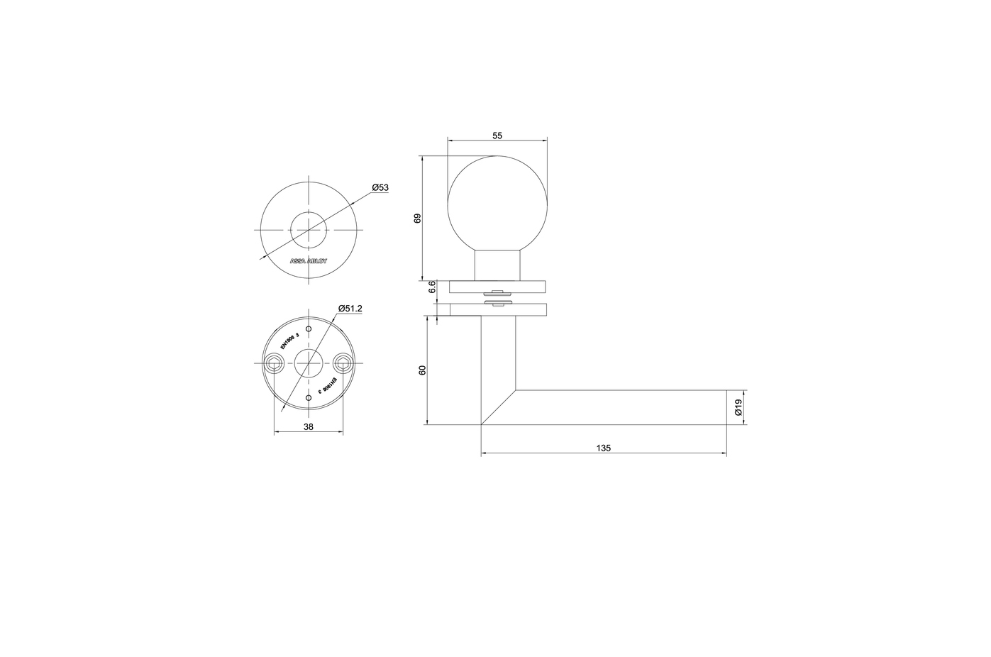 • Kulaté rozetové kování z nerezového materiálu dodáváno v páru (bez spodních rozet).