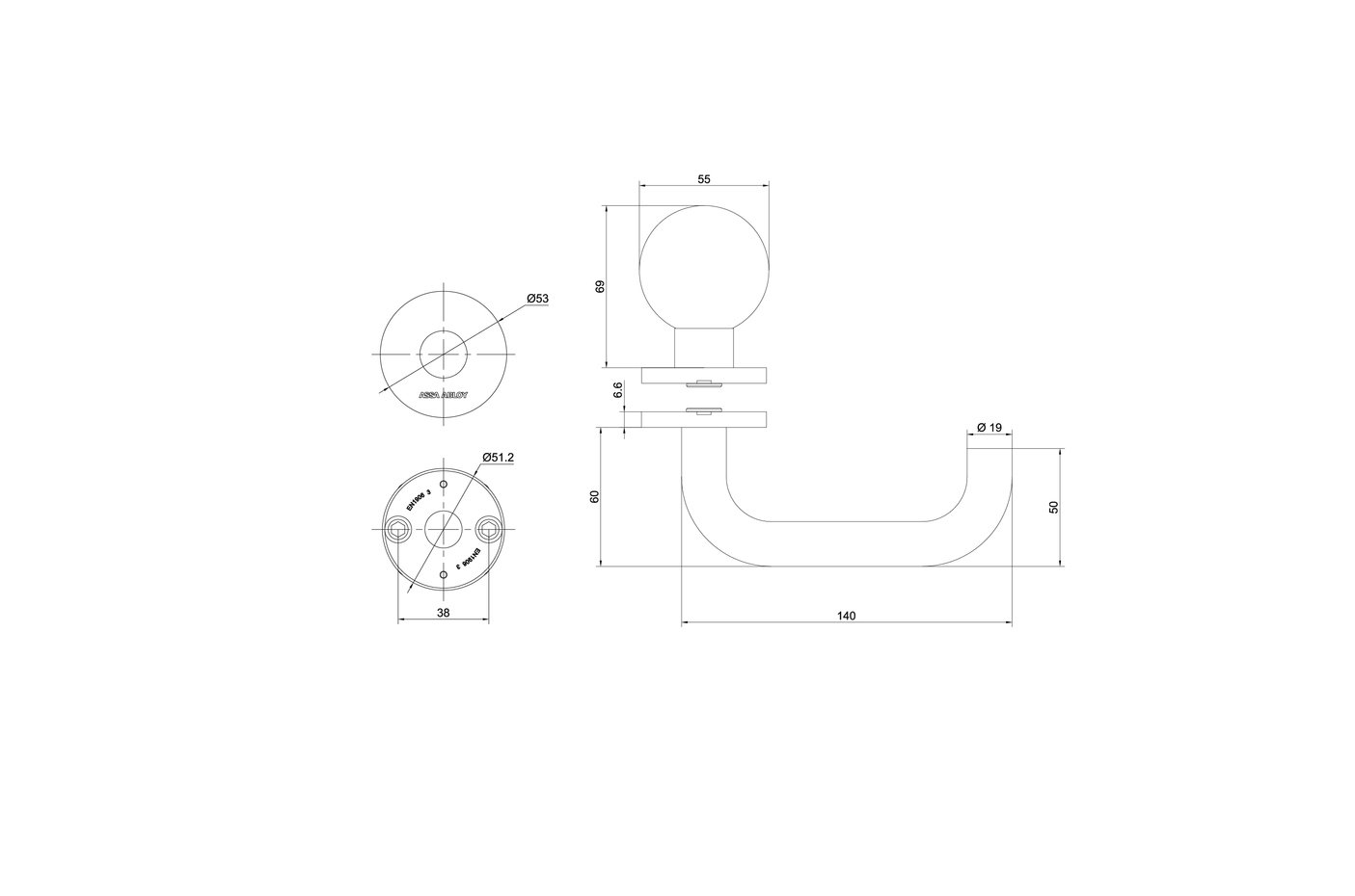 • Tloušťka dveří: 38 - 60 mm.