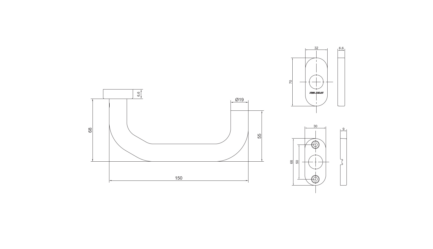 • Oválné rozetové kování z nerezového materiálu dodáváno v páru (bez spodních rozet).