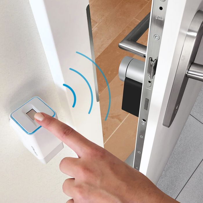 Pokud použije čtečku otisku prstů Ekey osoba oprávněna vstoupit, čtečka odešle rádiový signál (BLE) do cytrého zámku NUKi a tím se dveře odemknou (nebo zamknou).