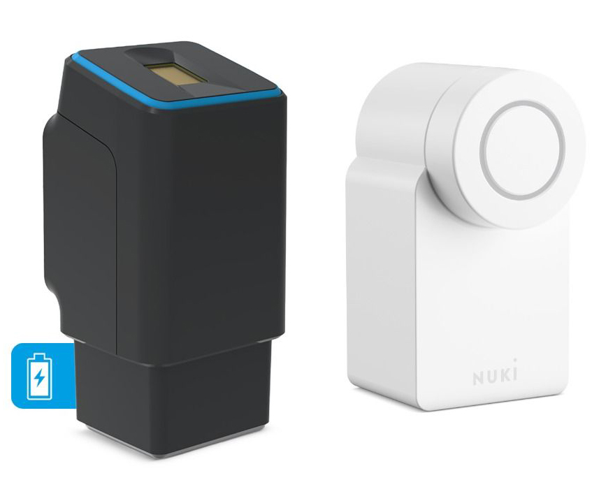 Otisk prstu ekey uno na baterie odolný vůči povětrnostním vlivům může být namontován i venku a rozpoznává prsty oprávněných osob. Bateriový dveřní zámek Nuki Smart Lock 3.0 je namontován na vnitřní straně dveří na vložce zámku. Tato vložka musí být osazena tzv. prostupovou spojkou, kdy umožňuje odemknutí dveří zvenčí i při zasunutém klíči z vnitřní strany dveří. Zámek NUKi pak otáčí klíčem, který je zasunut právě z této strany.