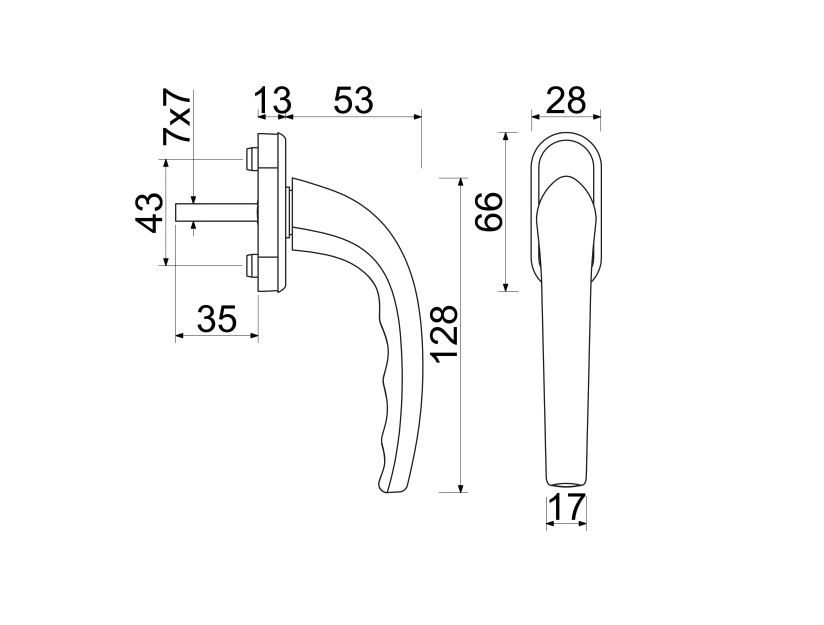• Hliníková okenní klika s 45° aretací se zinkovým jádrem.