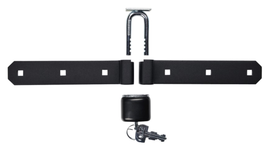 • Uzamykatelná závora z ocelového plechu tloušťky 4 mm pro dvoukřídlá vrata.