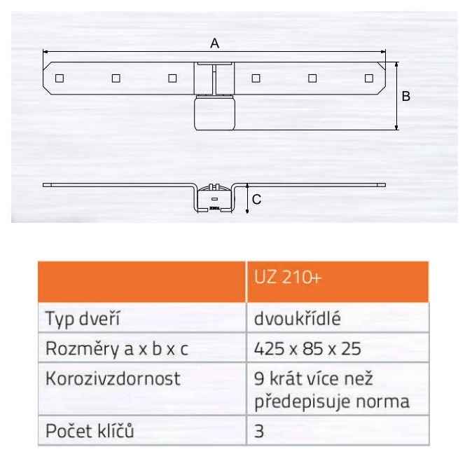 • S visacím zámkem TOKOZ 113/50+ (3x klíč), který má motýlkový mechanismus odolný proti bumpingu, vyhmatání a odvrtání.