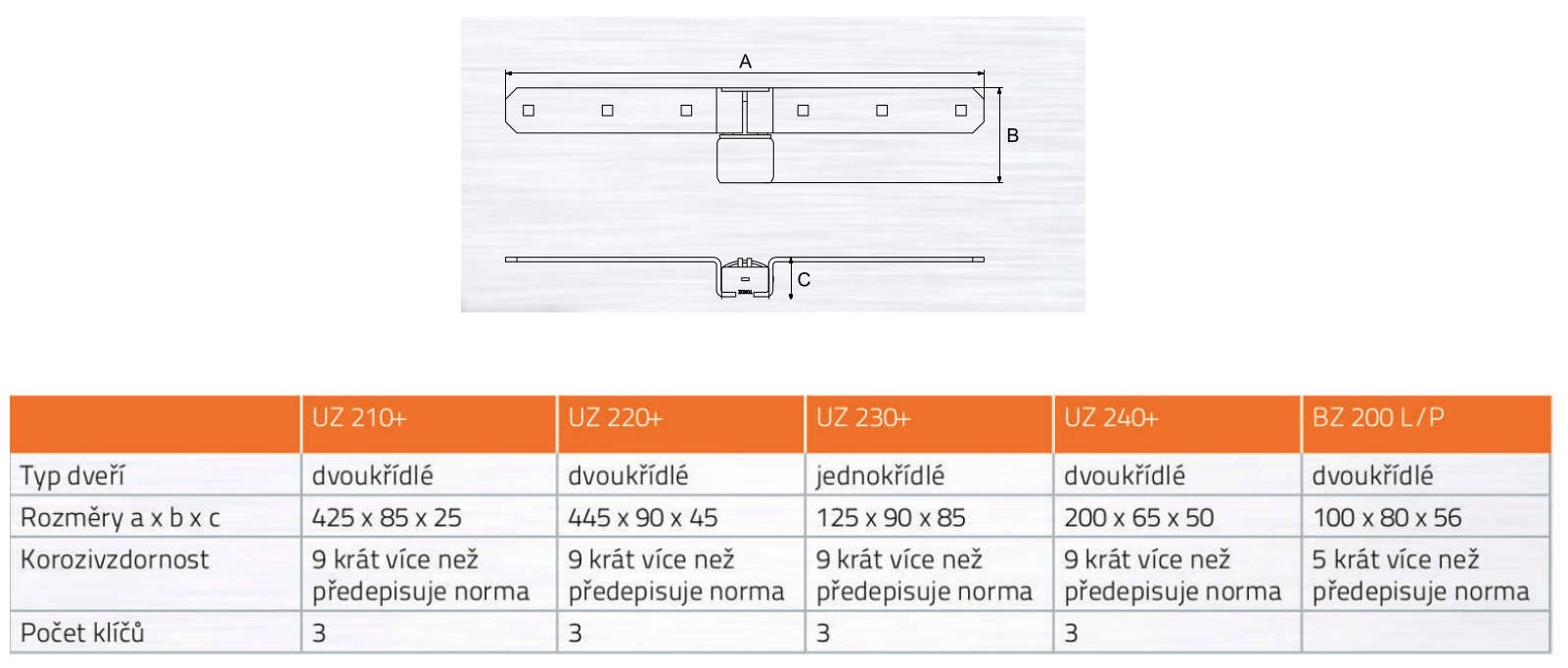• S visacím zámkem TOKOZ 113/50+ (3x klíč), který má motýlkový mechanismus odolný proti bumpingu, vyhmatání a odvrtání.