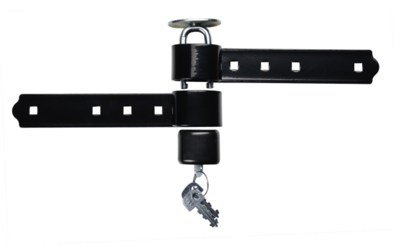 • Uzamykatelná závora z ocelového plechu tloušťky 4 mm pro dvoukřídlá vrata.
