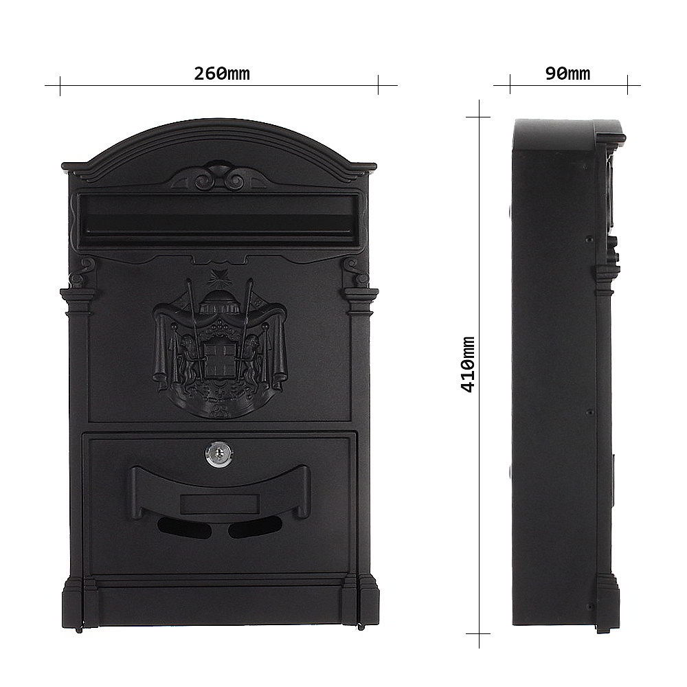 • Uzamykatelná poštovní schránka v černé barvě se dvěma klíči.