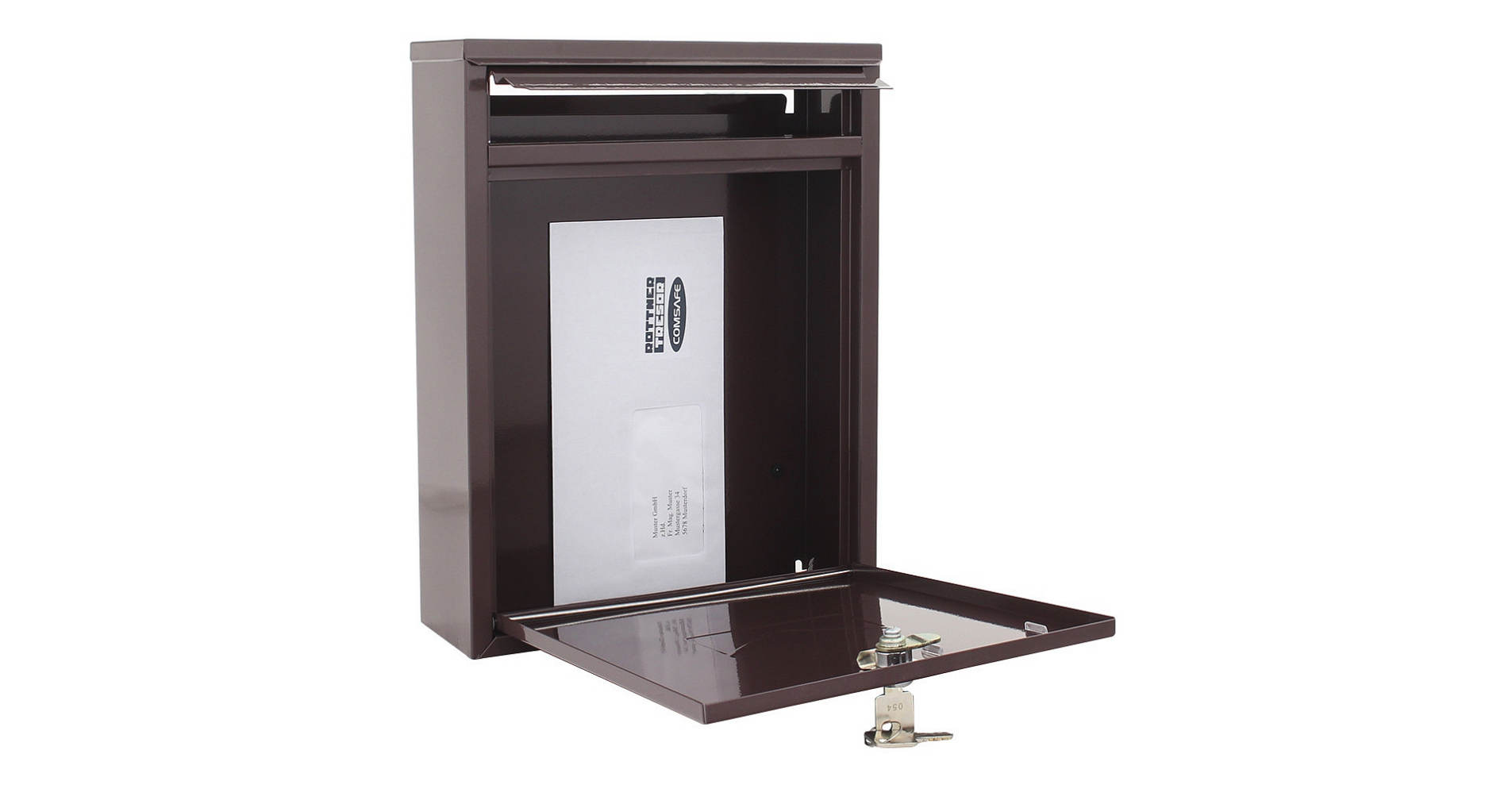 • Poštovní schránka hnědé barvy.