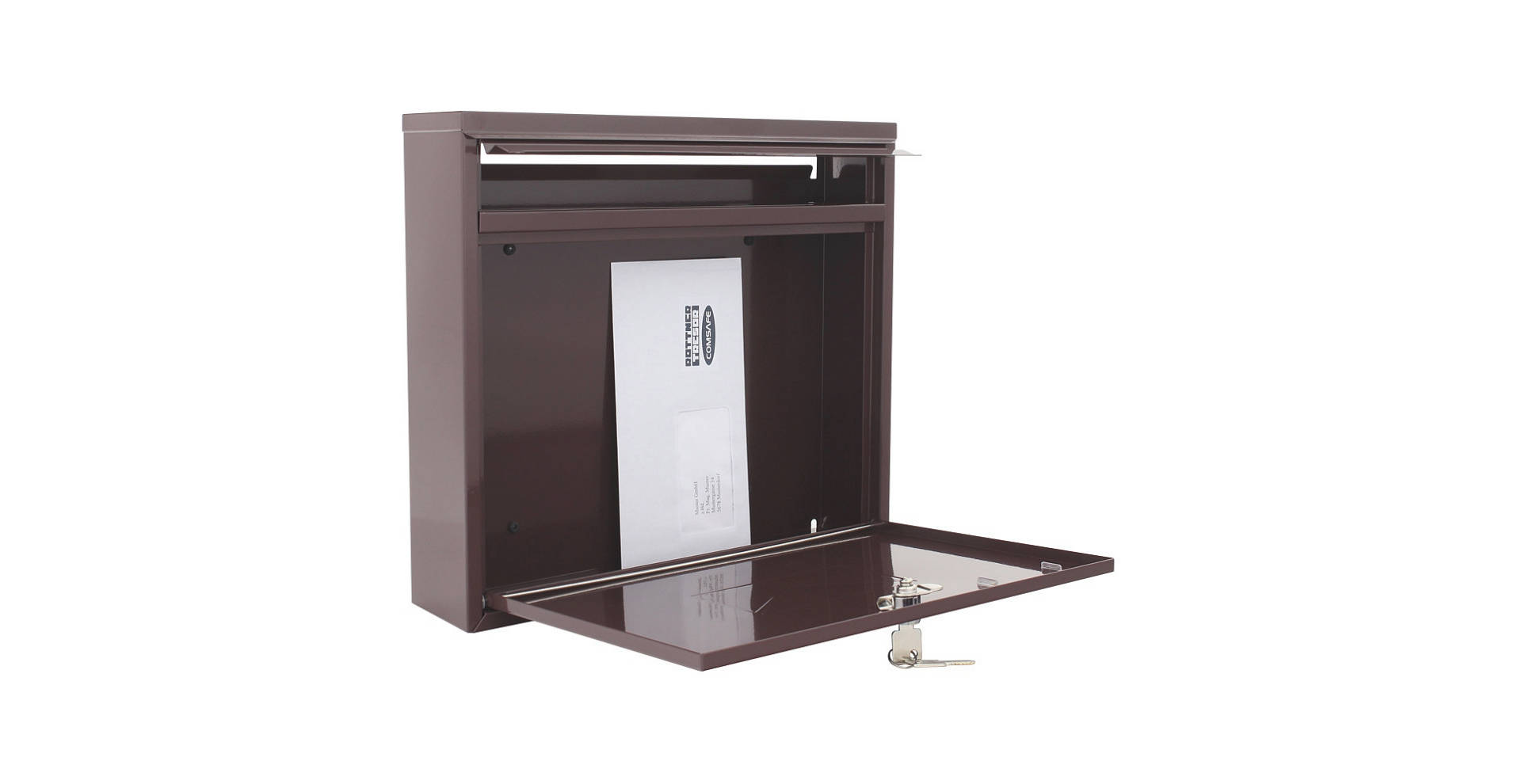• Poštovní schránka hnědé barvy.