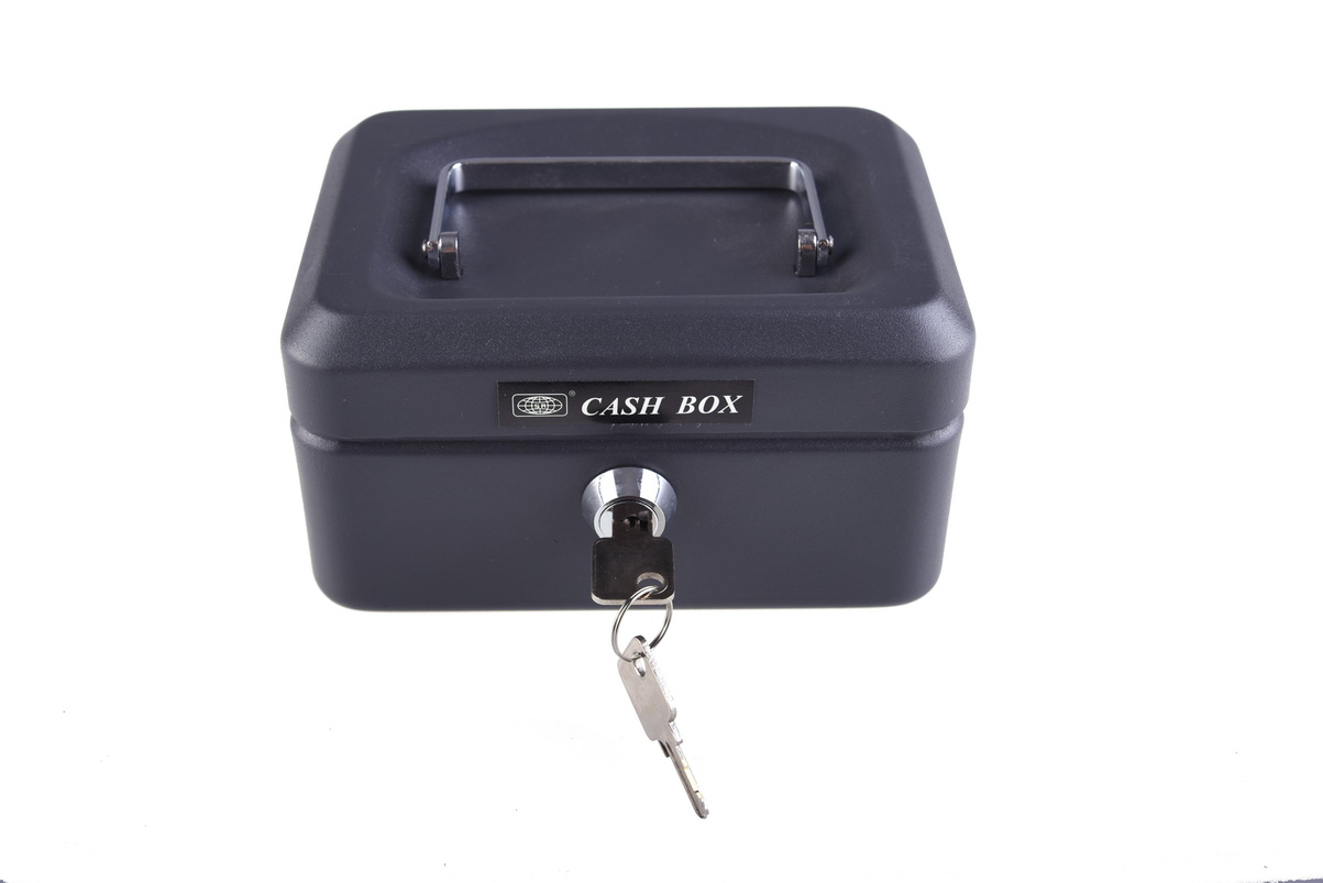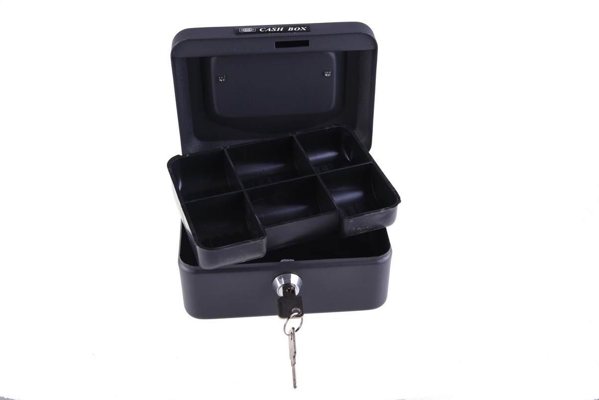 Kovová pokladna s plastovou přihrádkou na kovové mince. Příhradka je vyjímatelná. Součástí příruční pokladny jsou dva klíče. Na vyžádání jsme schopni vyrobit další klíč.