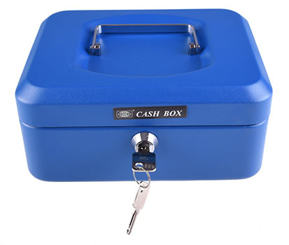 Kovová pokladna s plastovou přihrádkou na kovové mince. Příhradka je vyjímatelná. Součástí příruční pokladny jsou dva klíče. Na vyžádání jsme schopni vyrobit další klíč.
