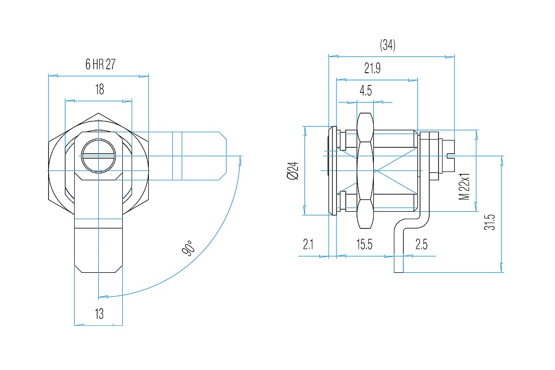 • Otočením klíče o 90° se závorka pootočí o 90° (závorku možno nasadit ve 4 polohách po 90°).