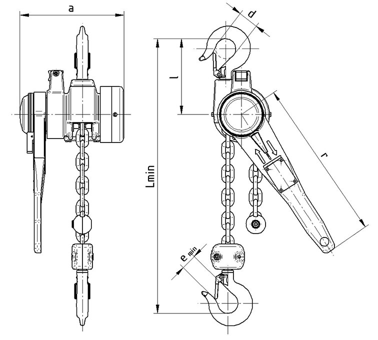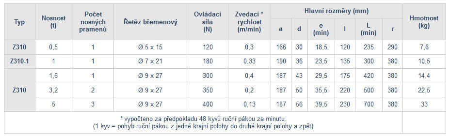 Varianta řehtačkového zvedáku Brano s článkovým řetězem – vhodný pro „lehčí“ dílenské použití – nosnost 0,5 t – 5 t.