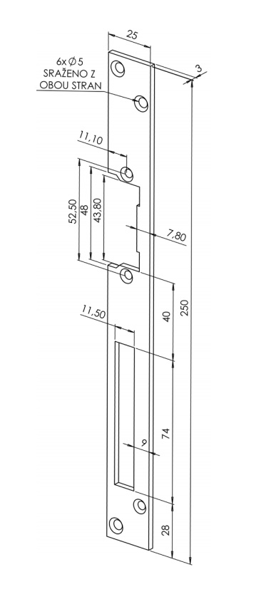 Lišta rovná zinek k el. otvíračům.