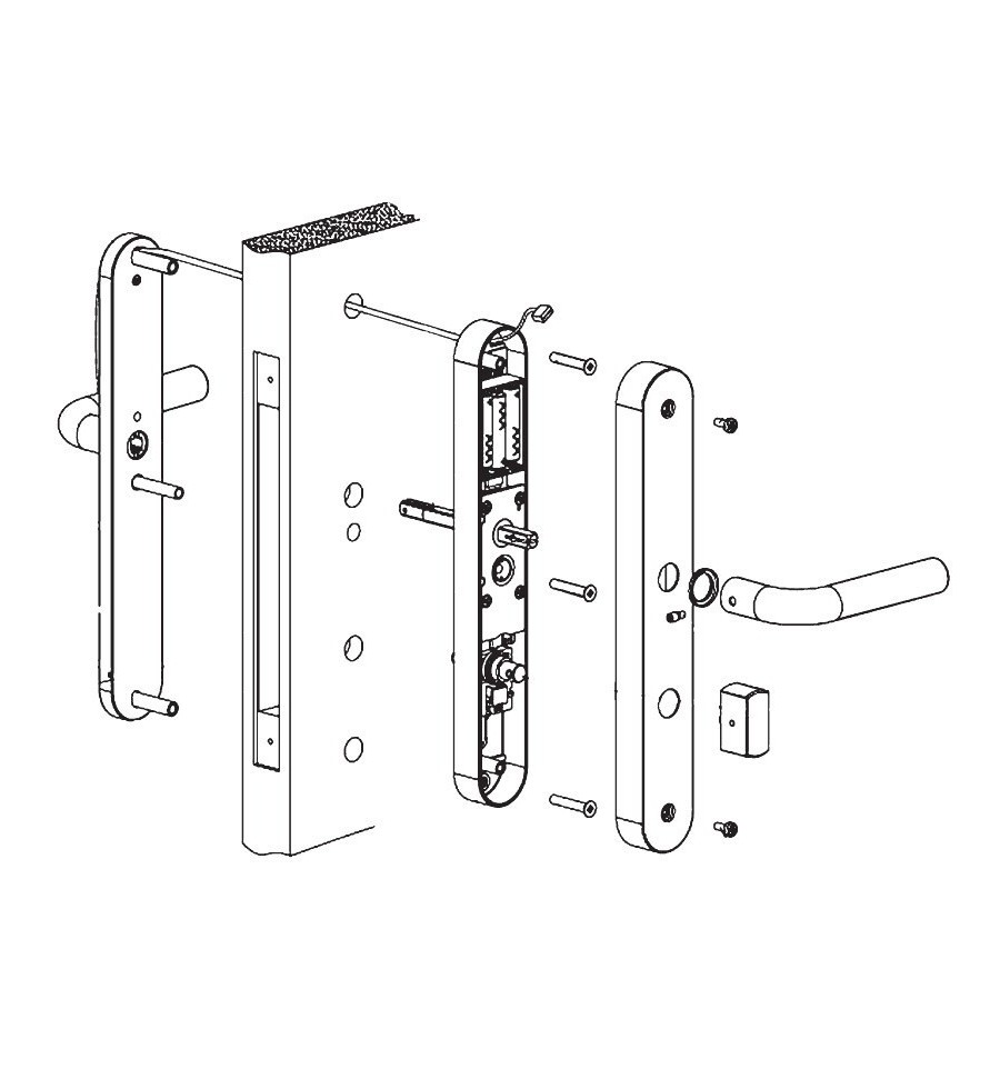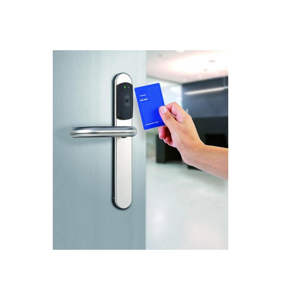 • dveřní kování s integrovanou čtečkou RFID karet a elektronickým spínáním vnější kliky