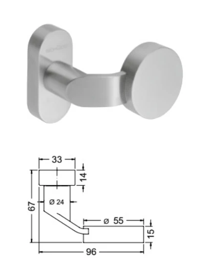 • Průměr madla 55 mm, tloušťka madla 15 mm