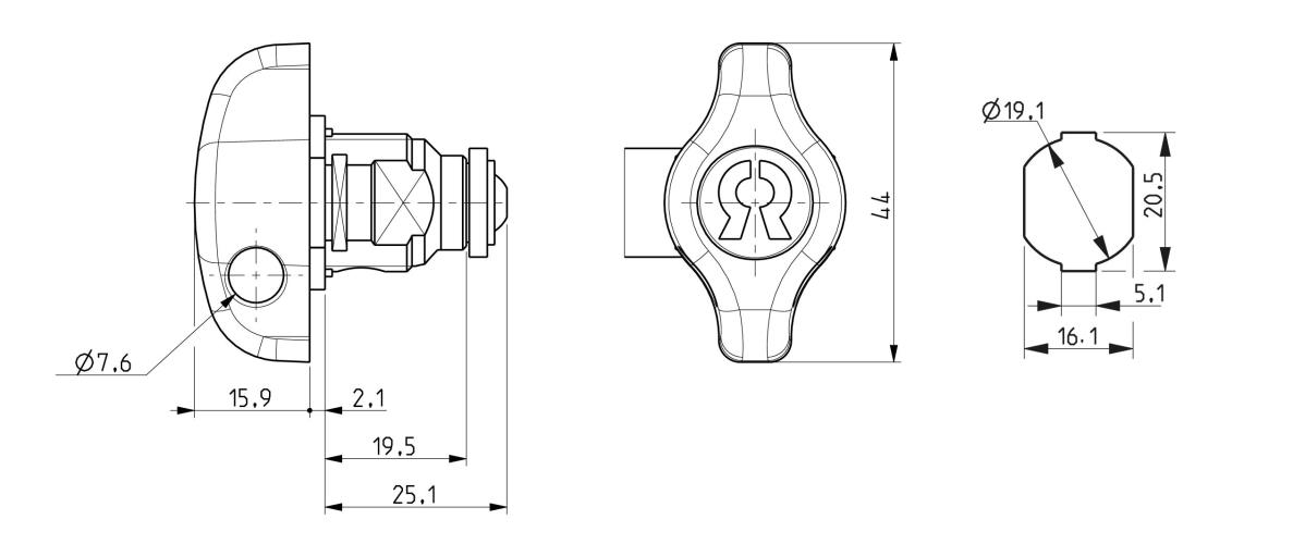 Zámek se dá z vnitřní strany uchytit maticí nebo zápakou ve tvaru "U".