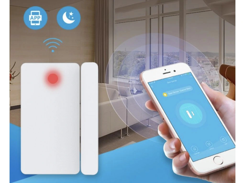 Chytrý senzor na okna a dveře, WiFi, mobilní aplikace Tuya Smart / Smart Life, kompatibilní s hlasovými asistenty Google Assistant a Amazon Alexa.