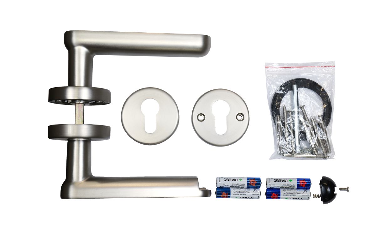 v restauračních zařízení. Z vnitřní strany je klika vždy aktivní. Vzhledem k tomu, že není omezen počet uživatelů ani klik, máte možnost vytvořit přístupový systém, který si díky jednoduché aplikaci v telefonu můžete spravovat. "Smart Touch Handle" můžete použít s Vaším stávajícím zadlabacím zámkem. Dveře budou jištěny pouze střelkou zámku (zabouchnuté dveře). Snadná výměna za stávající kliku bez nutnosti úprav.